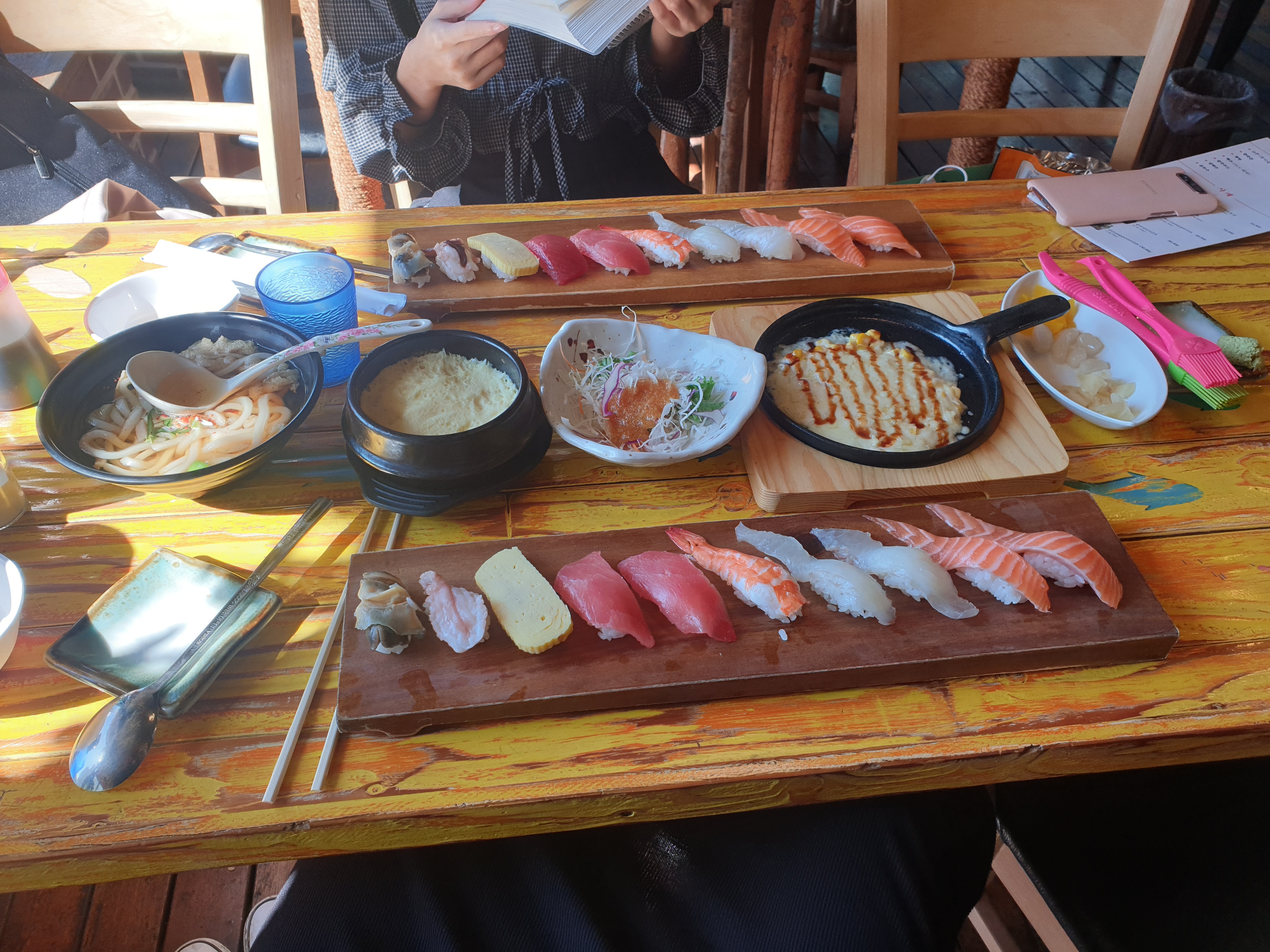 친구랑 모둠초밥 1인분씩 시켰는데 우동이랑 계란찜이랑 샐러드랑 콘치즈까지 주셨습니다.